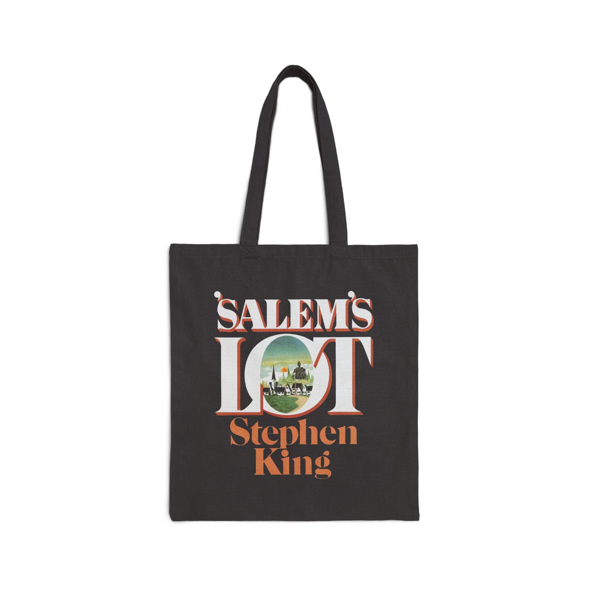 Commemorate half a century of Stephen King’s chilling masterpiece with this exclusive ’Salem’s Lot 50th Anniversary Tote Bag. Featuring the original 1975 hardcover artwork on one side and a minimalist 50-year tribute design on the reverse, this black cotton canvas tote bridges past and present — celebrating the town that first taught readers what truly comes out after dark.